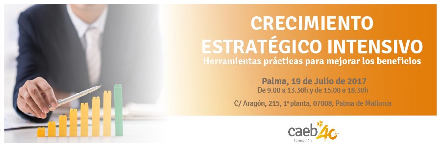 miércoles 19th julio 2017 De 09:00 AM A 06:30 PM , Precio 265€ Crecimiento Estratégico Intensivo Detalles Fecha: 19/07/2017 Hora: 09:00 - 18:30 Precio: 265€ Categoría del Evento: Formación Página Web: http://www.caebformacion.com/curso/493/crecimiento-estrategico-intensivo-herramientas-practicas-para-mejorar-los-beneficios DESCARGAR PROGRAMA + Google Calendar+ Exportar iCal