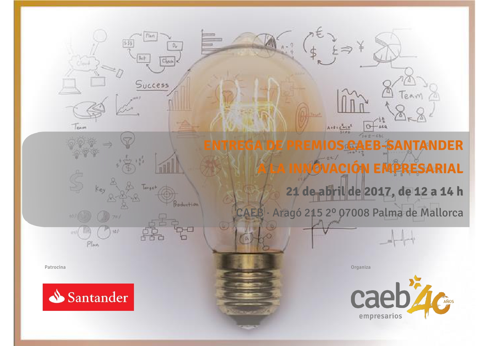 viernes 21st abril 2017 De 12:00 PM A 02:00 PM Calle Aragón 215 Palma de Mallorca, España Precio Gratuito Entrega de Premios CAEB-SANTANDER a la Innovación Empresarial Detalles Fecha: 21/04/2017 Hora: 12:00 - 14:00 Precio: Gratuito Categorías del Evento: Empresas, Innovación Lugar CAEB Mallorca Calle Aragón 215 Palma de Mallorca, Baleares 07008 España Teléfono: 971706010 Página Web: www.caeb.es DESCARGAR PROGRAMA INSCRIBIRSE + Google Calendar+ Exportar iCal
