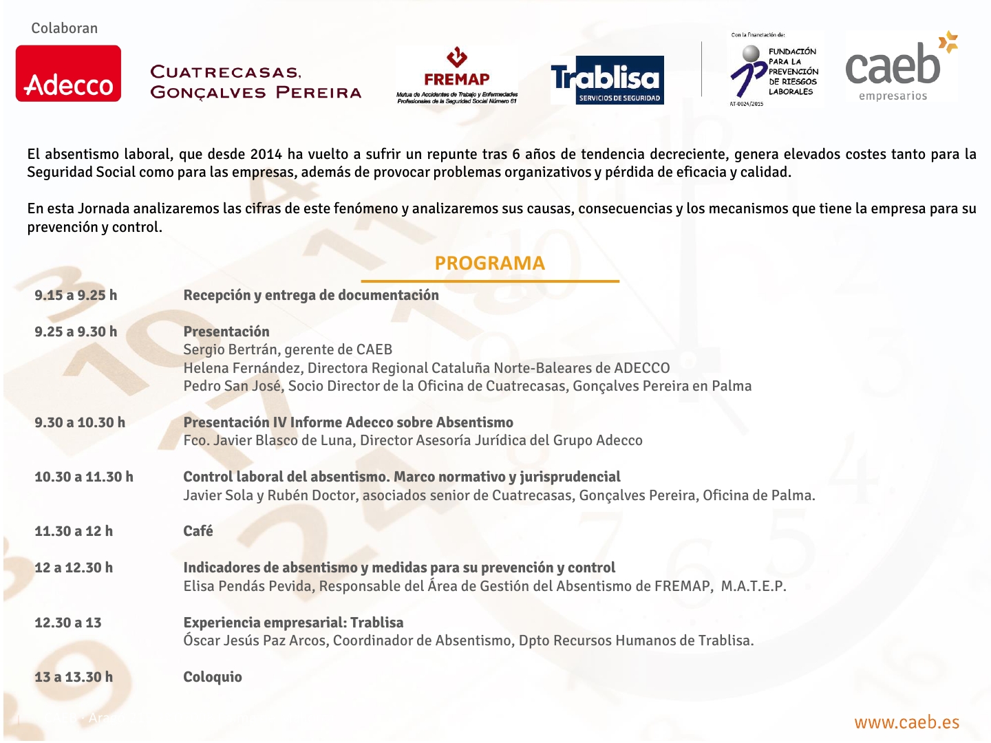 9.30 a 10.30 h Presentación IV Informe Adecco sobre Absentismo