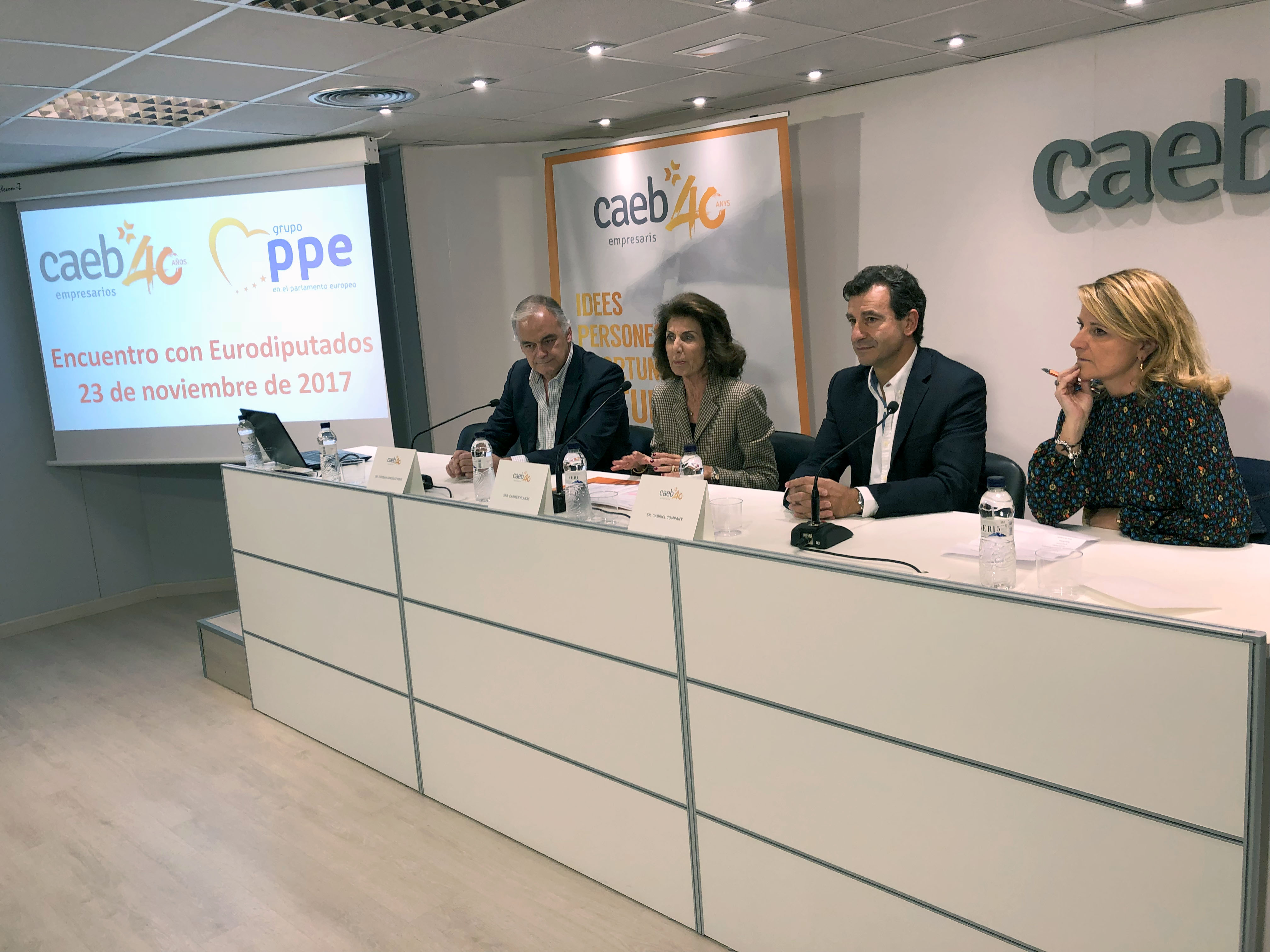 Directivos de CAEB y representantes empresariales de Balears han mantenido un encuentro con una delegación de eurodiputados del Partido Popular encabezada por Esteban González Pons y Rosa Estarás